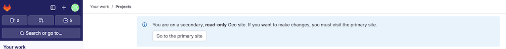 - Putting all Geo sites behind a single URL, to deliver a consistent, seamless, and comprehensive experience whichever site the user lands on. Users don't need to juggle multiple GitLab URLs.